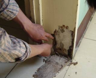 白蟻的巢多數建造在地下幾十厘米的地方,是白蟻的大本營,統領的白蟻群體很大,活動范圍很廣,蟻巢可能會在整棟房屋的地基下面,也可能會遠離被危害樹木。白蟻危害目標不定,一般是交叉式進行危害。白蟻在地下修筑的蟻道恰似拉網一樣,每個木構件都是白蟻的靶標對象。白蟻在配對筑巢初期可能危害較小,不易被發現,但恰似“星星之火,可以燎原”,經過一段時間的繁殖,當種群數量達到一定規模時,即可產生較嚴重為害,發現危害時可能已造成不可挽回的損失,因此,白蟻的監測和定期查殺對于白蟻的防治相當重要,可在最大程度上減少白蟻為害損失。